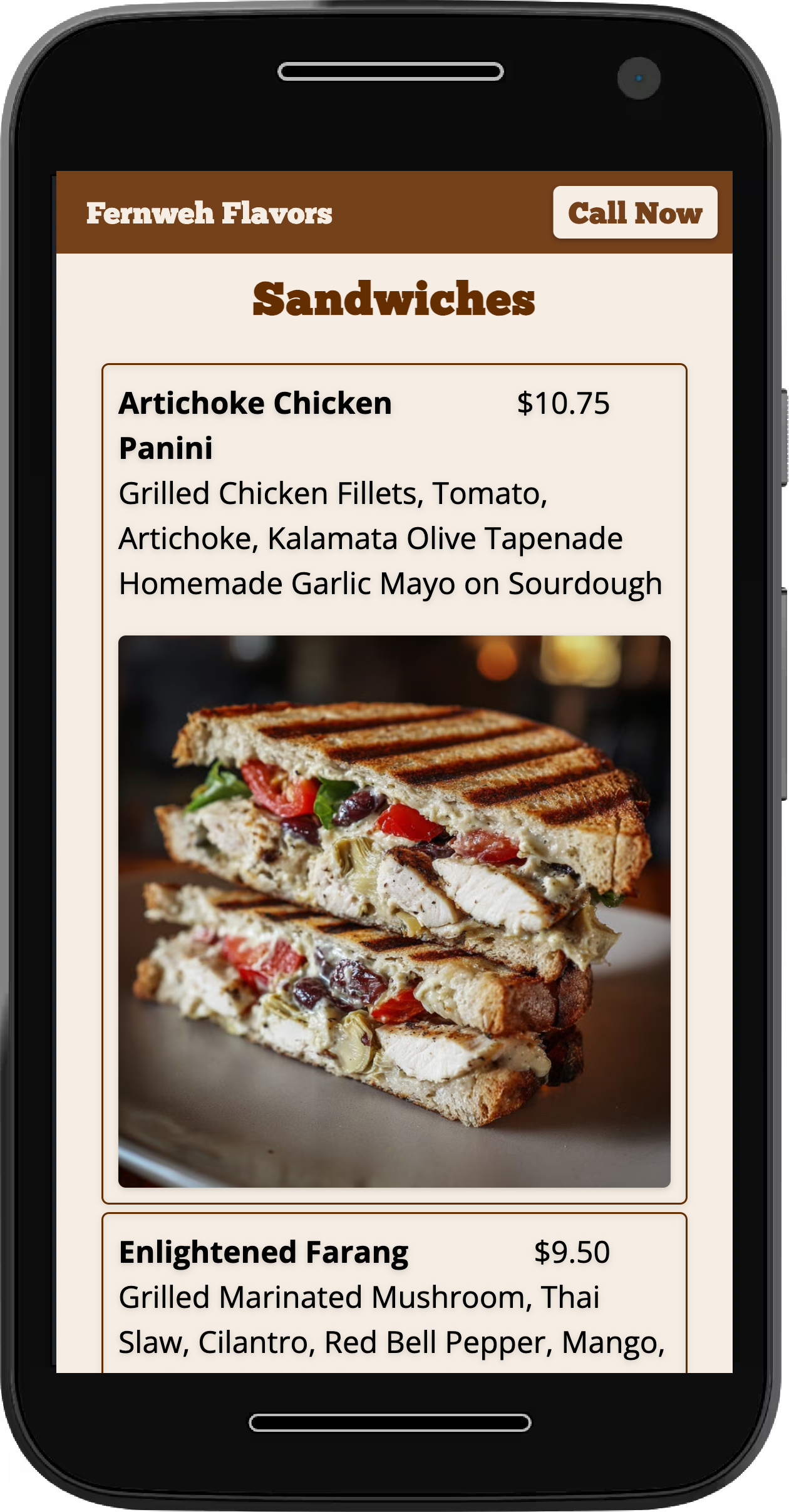 Lightning-fast, mobile-optimized menu website built to convert call-in orders.